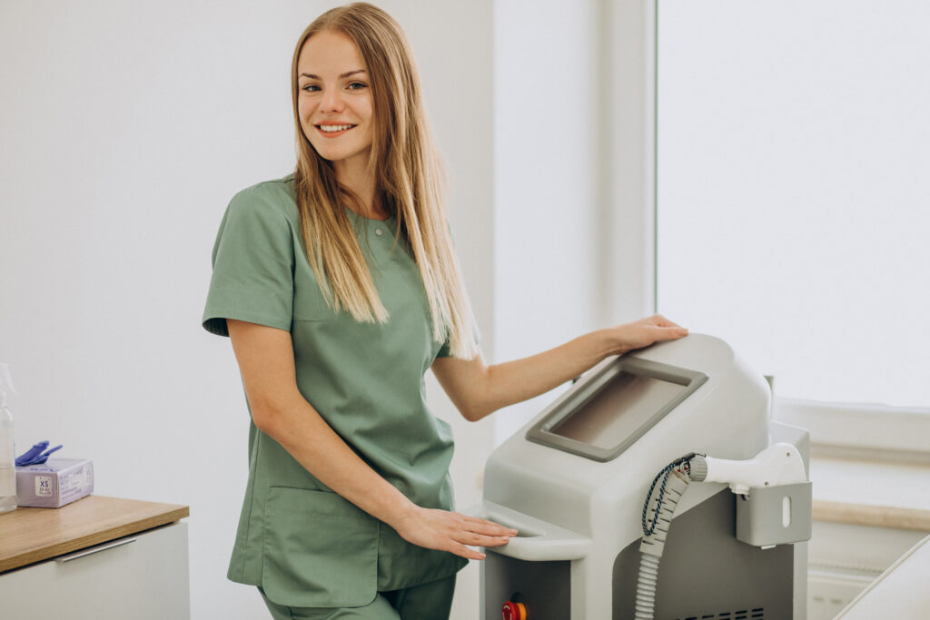 A medical esthetician works under the supervision of a licensed physician. They’ll provide treatments that involve more advanced skincare technology such as chemical peels and laser hair removal.