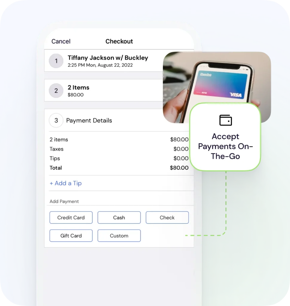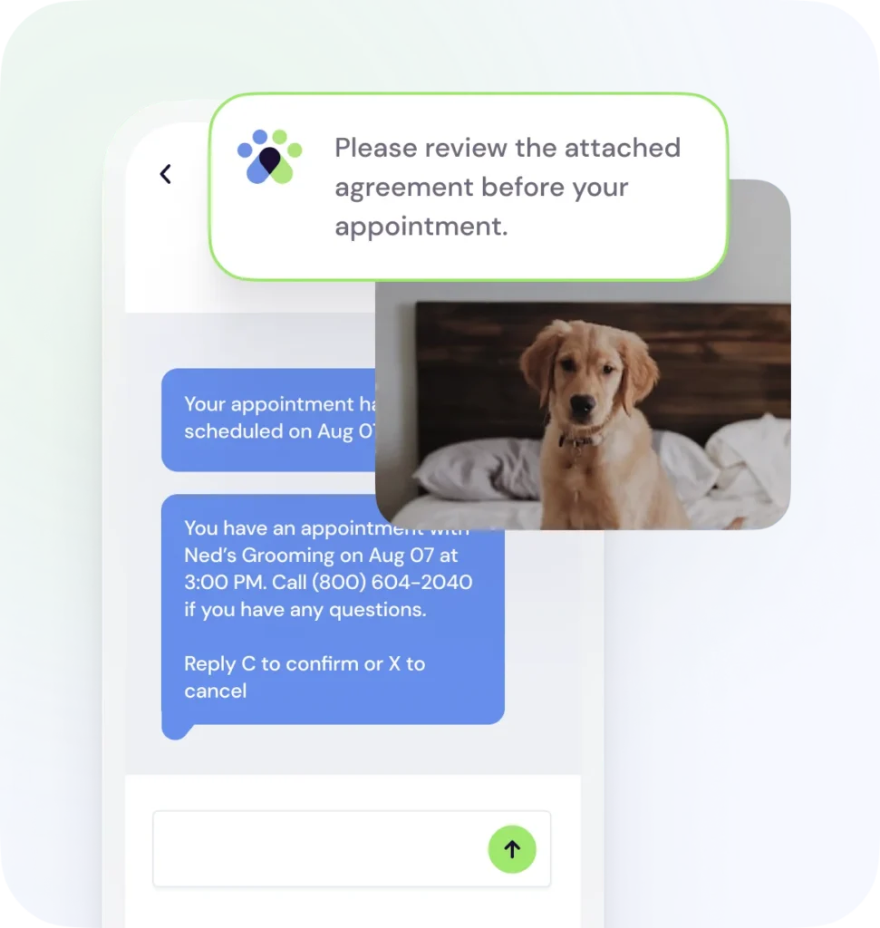 Whether you want to accept payments online or in-person, we’ve got you covered. Our pet groomer software allows clients to pay online, store their card information on file, or process their credit card on-site with a mobile reader for a seamless checkout experience.