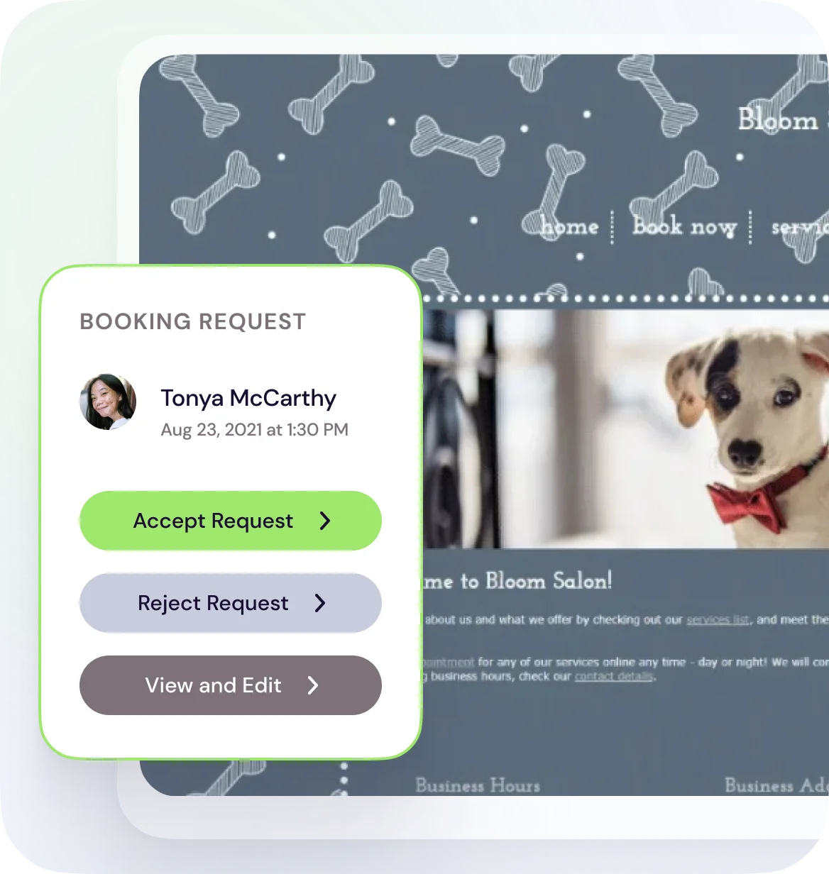 Keep your pet grooming business open 24/7 with a fully customizable online booking website