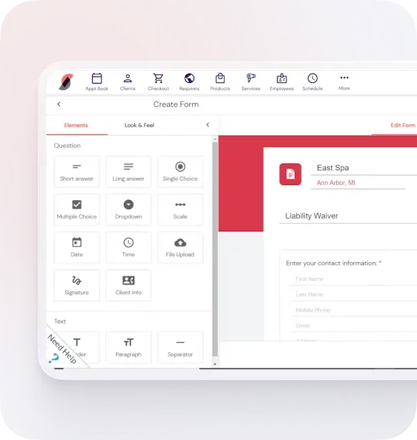 Avoid wasting valuable time collecting information before the service begins. Automatically send your client forms upon scheduling for specific services. Once the form is complete, it will be stored and accessible within the client profile.