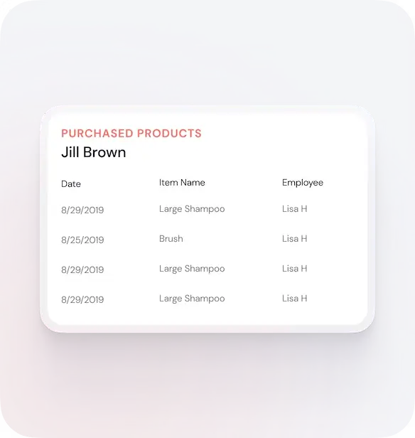 Quickly access past retail purchases stored within the client profile, allowing you to suggest repurchasing for an opportunity to boost retail sales and keep clients happy!