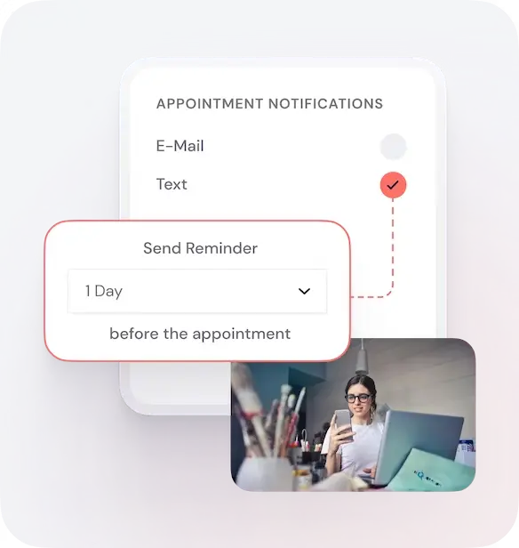Reduce front desk tasks by automatically texting or emailing appointment reminders to clients. Choose the timeframe for the reminder and get notified in the appointment book once confirmation is received.
