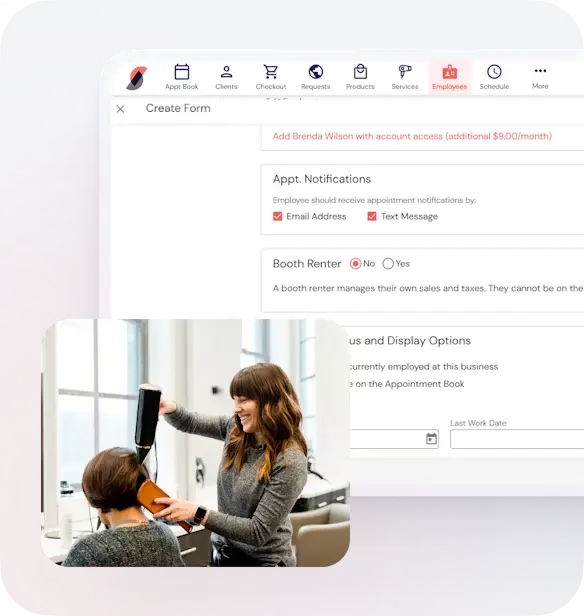 Reduce time at checkout and quickly rebook appointments. Simply choose the number of weeks between appointments, set up single or recurring visits, enter the service information, and submit. Send notifications to clients and staff upon booking, while appointment reminders automatically send closer to the appointment date.