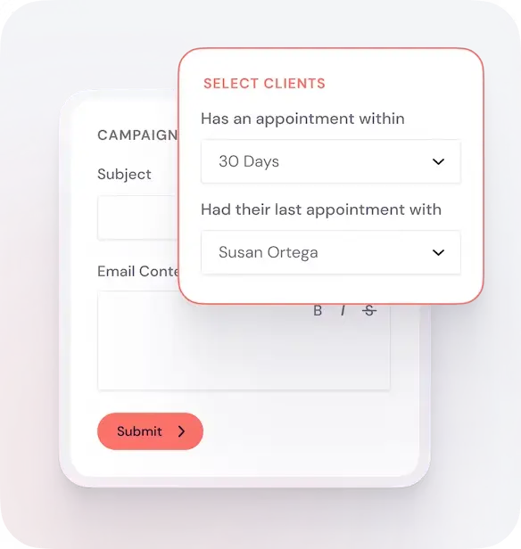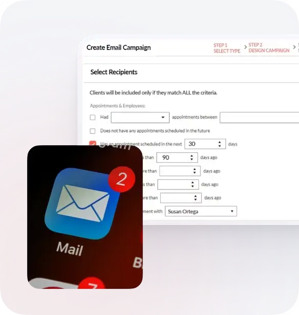 Select specific client profile information to generate targeted text campaigns that help reach the clients you want to maximize your marketing efforts. Schedule and designate when and how often the texts are sent.
