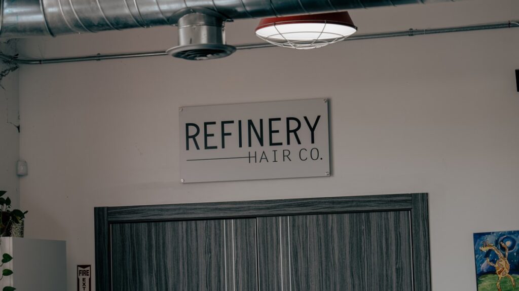 The Refinery Hair Co. is a full-service salon that offers an inviting atmosphere through modern design and an eclectic appeal.
