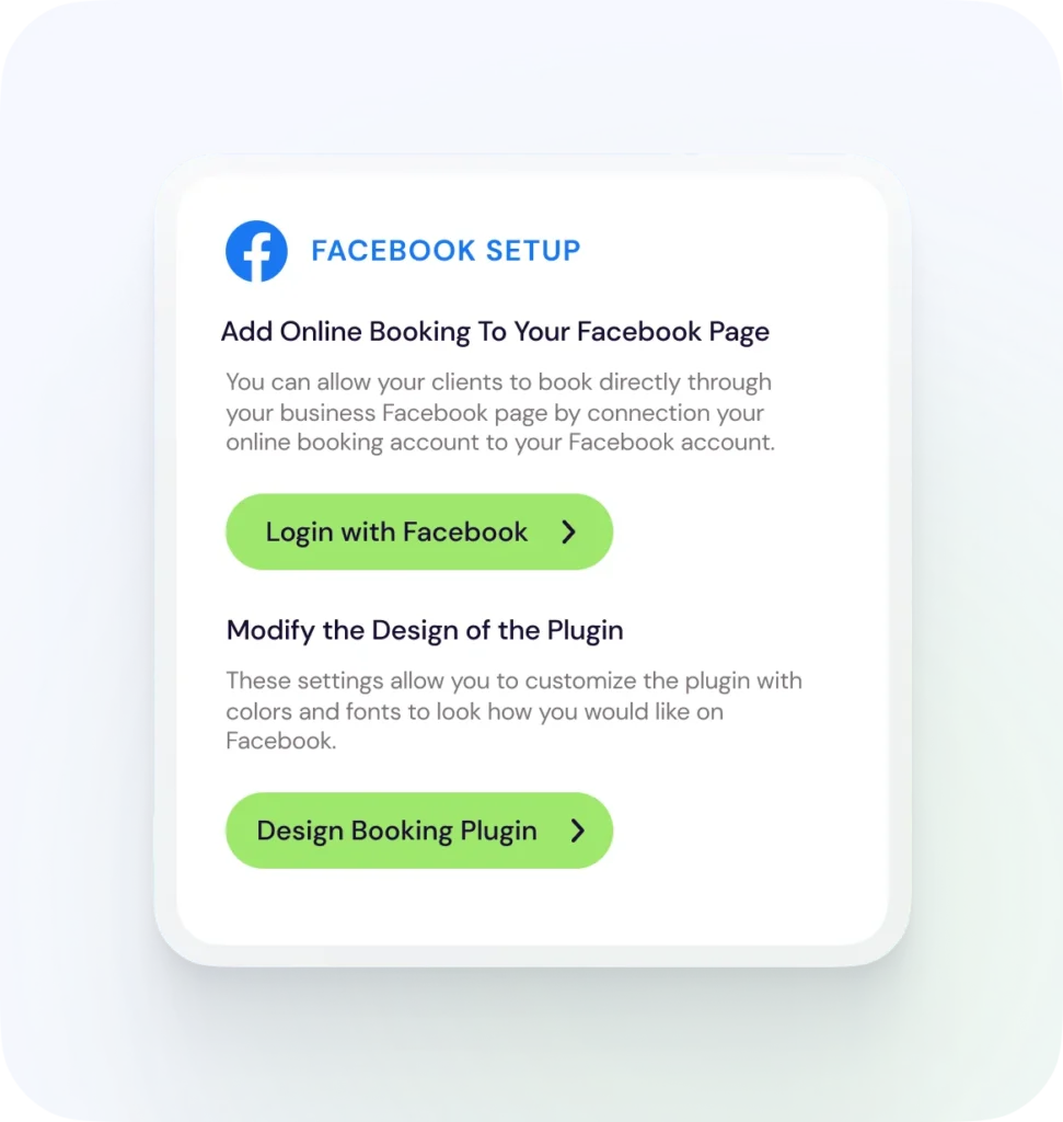 Reach more clients with built-in search engine optimization (SEO) and the ability to integrate your business’ Facebook and Instagram pages with your online booking website.