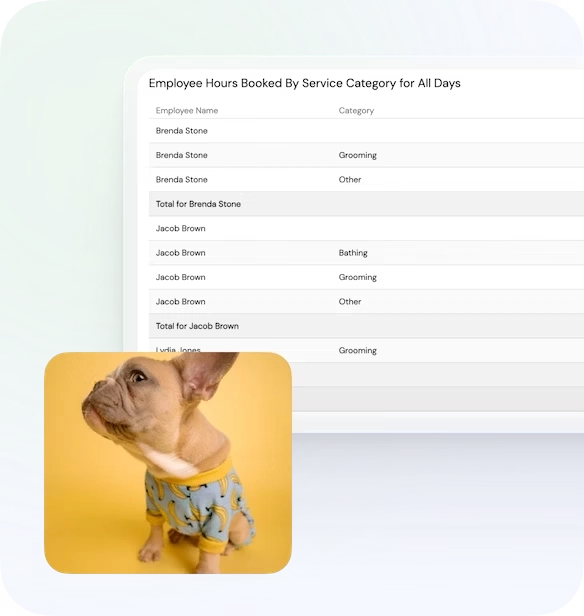 Track employee performance through metric reports based on hours worked, booking percentages, product returns, and more.