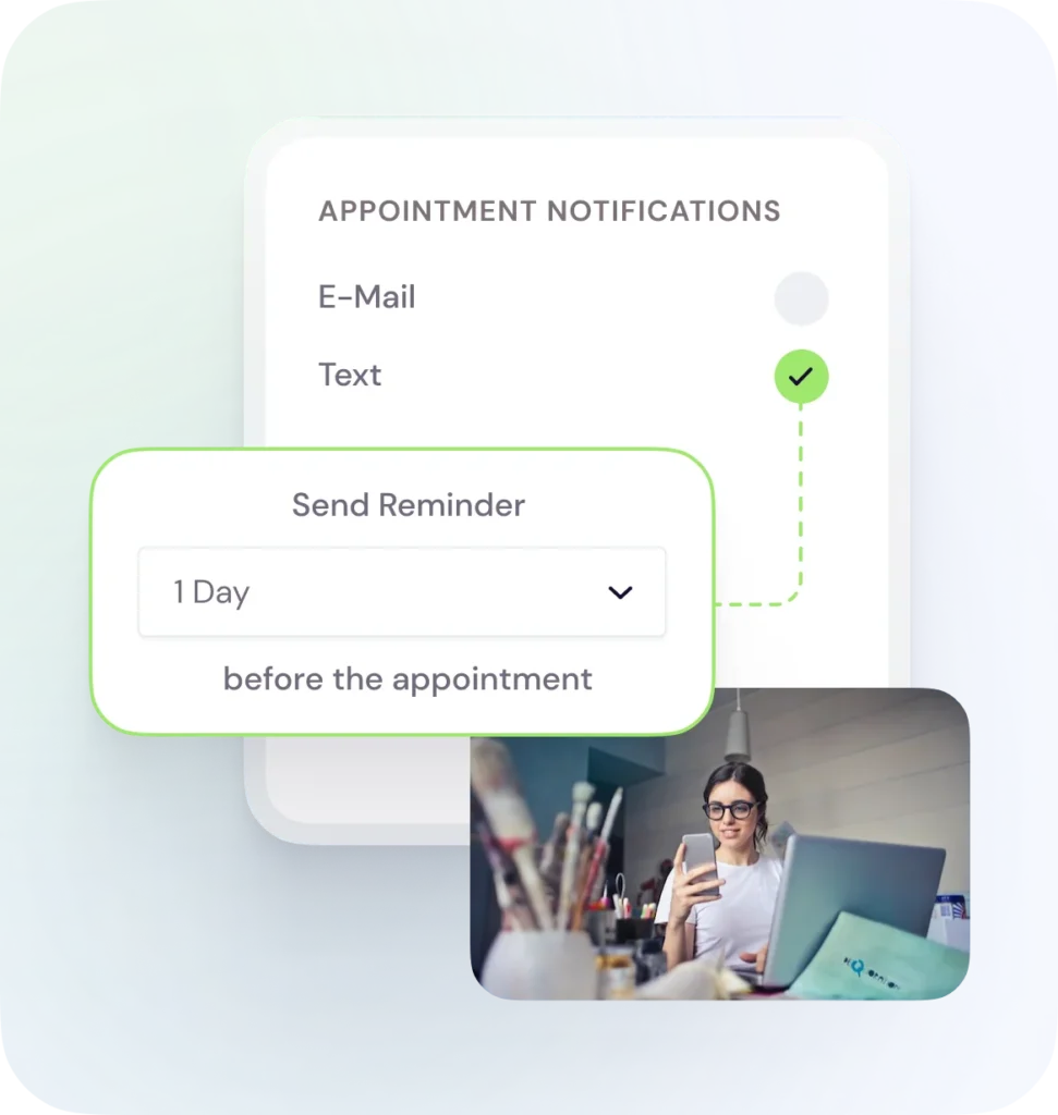 Gone are the days of calling your clients to remind them of their upcoming appointments. Send automated reminders to clients by text, email, or both.