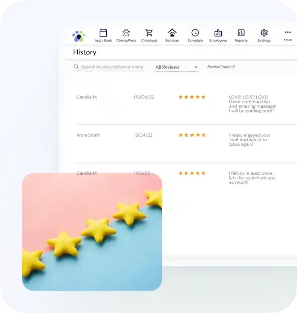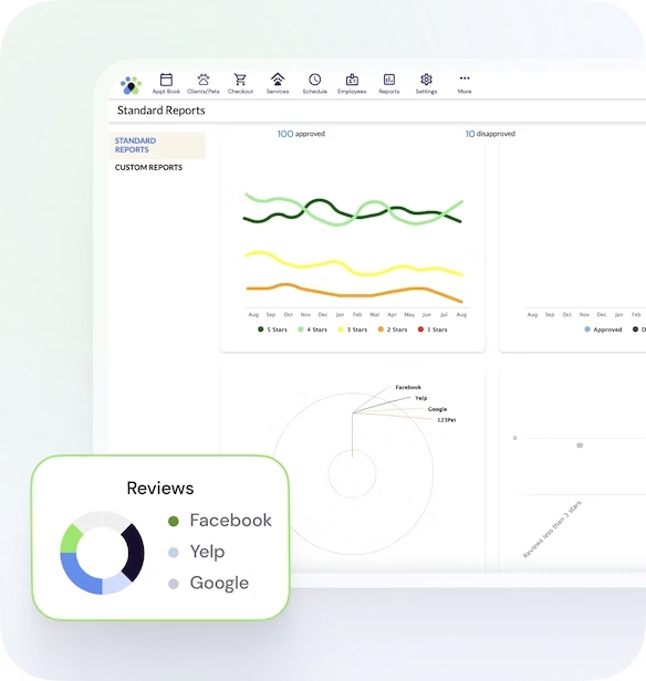 Get a detailed overview of your online reputation with a built-in dashboard that automatically tracks your client reviews.