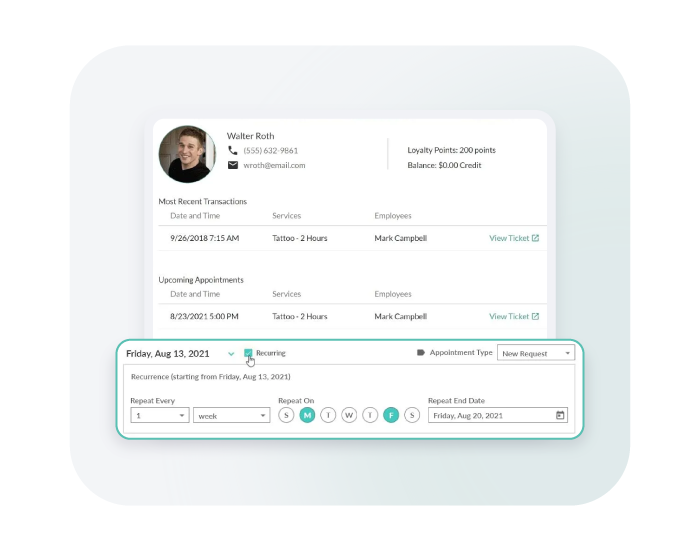 Keep multi-session, repeat, and recurring clients on schedule with the recurring appointments feature within DaySmart Body Art. Lock down the time that works until that piece is done. Simply enter the information once and let DaySmart Body Art do the rest.