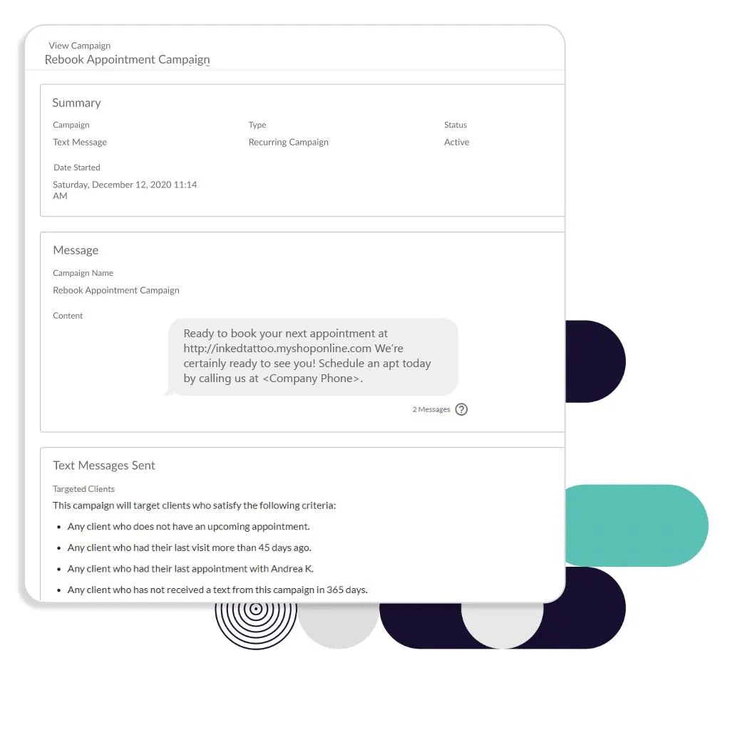 DaySmart Body Art’s Tattoo Text Marketing platforms have dozens of criteria to choose from so you can get as granular as you want when it comes to creating profitable text marketing campaigns. Have a campaign that’s really working for you? No problem. Just schedule it to recur for as long as you want. DaySmart Body Art will take it from there.