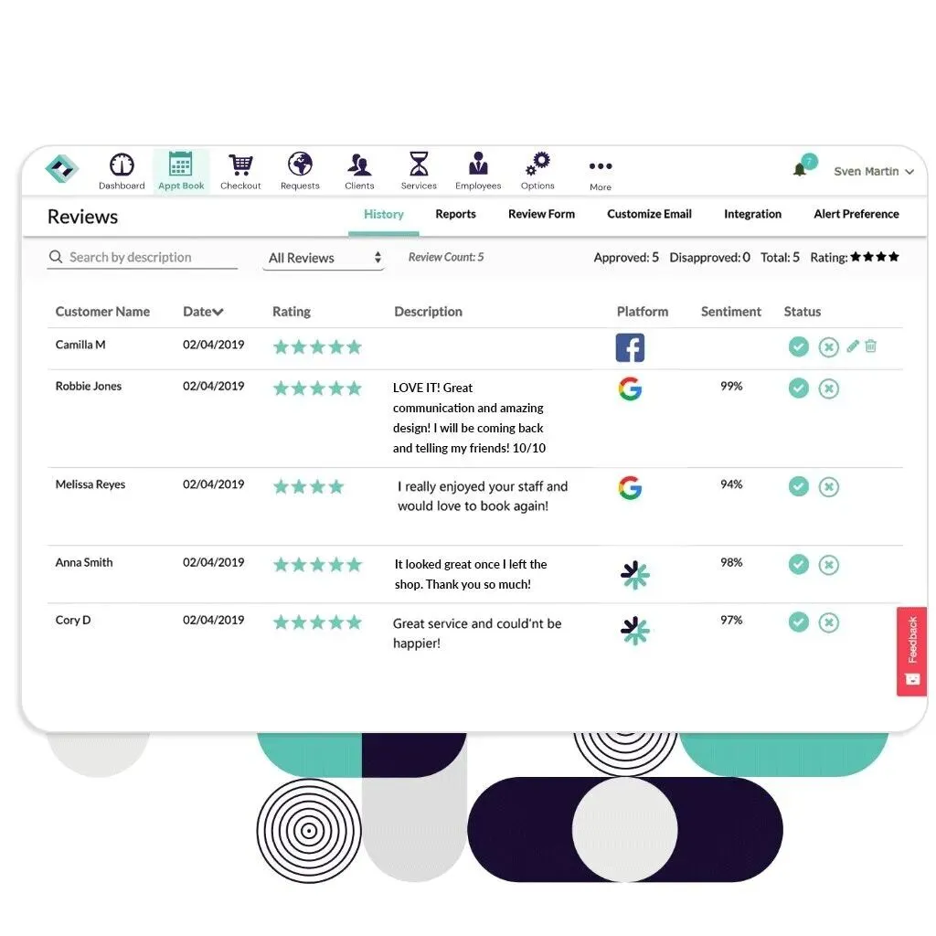 DaySmart Body Art’s detailed, built-in dashboard gives you at-a-glance access to performance metrics from Facebook, Yelp & Google. The dashboard shows you how many reviews or recommendations your shop has received, when and how many of them were either approved or rejected. This feature is integral to your tattoo shop’s brand management.
