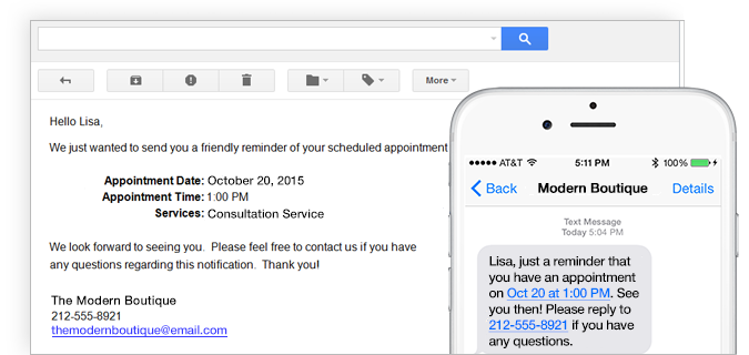 Connecting your business to your phone (through Apple or Android) means you can manage your business from the palm of your hand. It also means your staff can check their schedules (without calling in) and get automatically notified of cancellations.