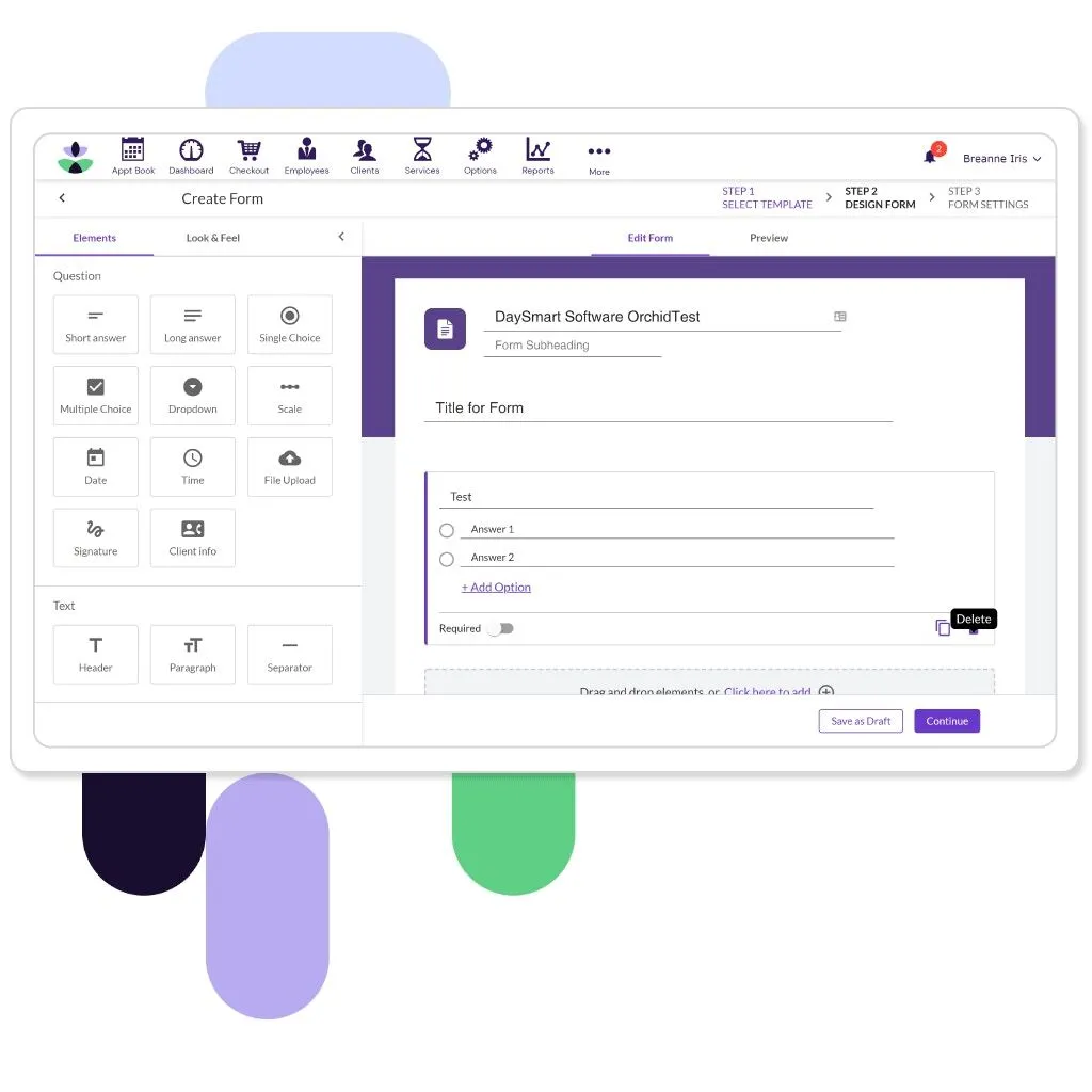 Create consent forms, client intake forms, pre-consultation forms, and liability waivers and attach them to designated services to send automatically.