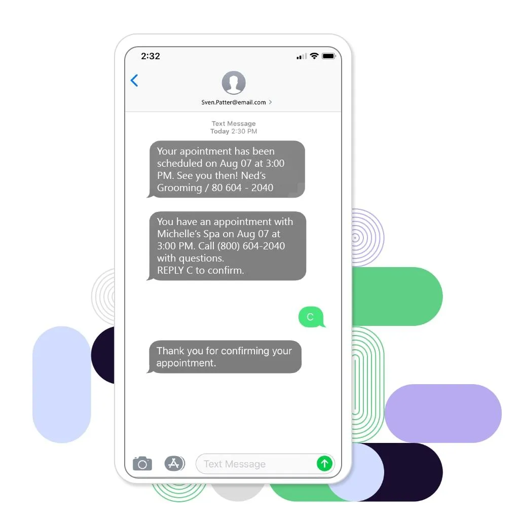 No more missed messages, scheduling conflicts, double bookings, or playing phone tag. Allow clients to easily confirm appointments by replying to your automated texts and/or emails. Once confirmations are received, appointments are automatically marked as confirmed on your books. One less thing to worry about!