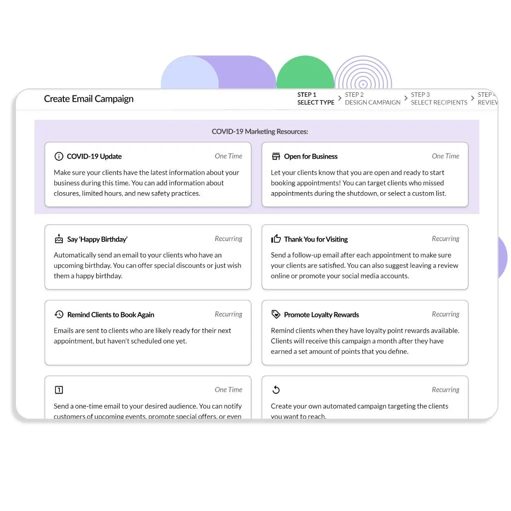 Why settle for one great marketing campaign when you can run it again and again? With DaySmart Spa’s automated recurring marketing feature, you don’t have to. Choose a campaign, set its schedule, and DaySmart Spa will take it from there.