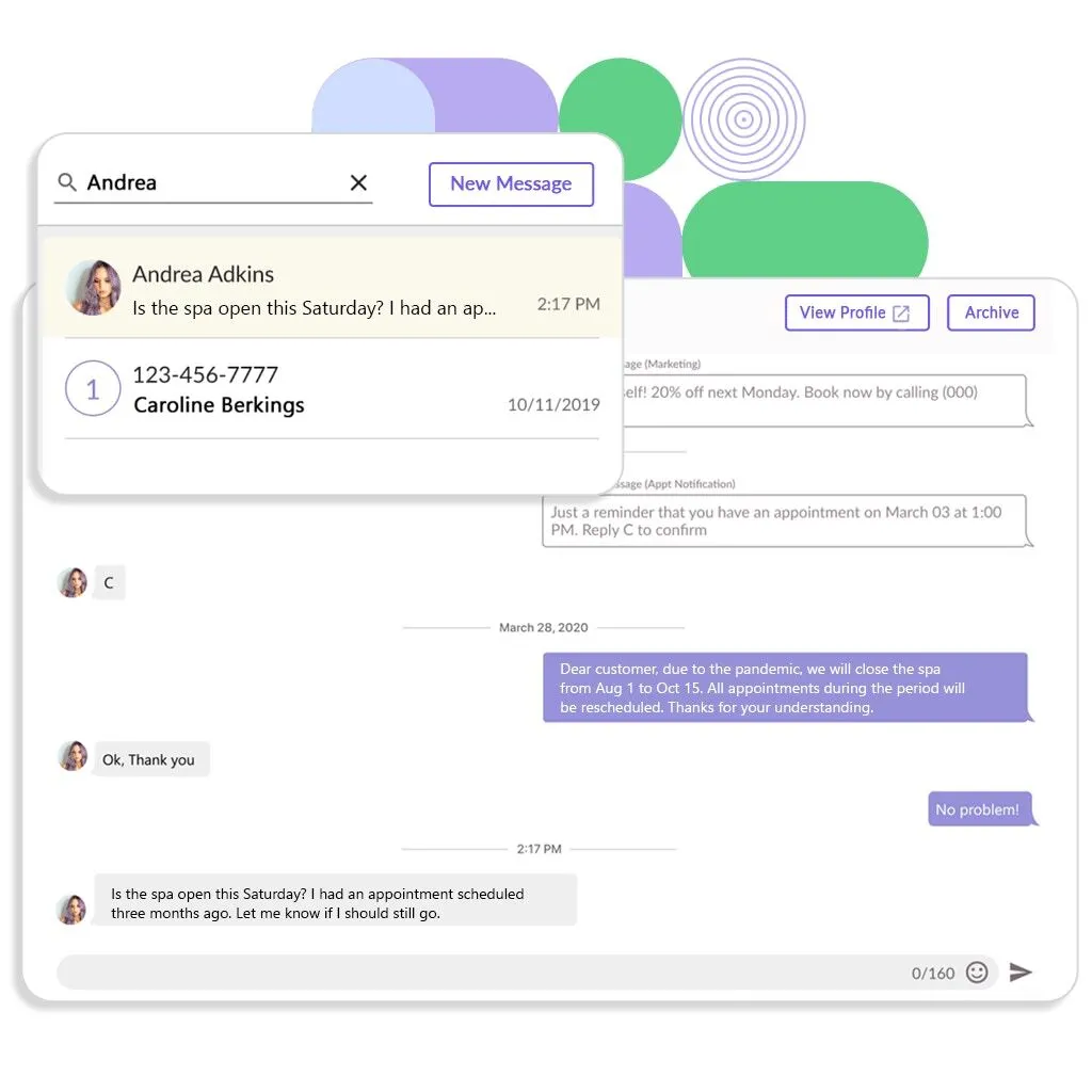 - View, send and reply to texts right from the Messages tab in the Daysmart Spa app